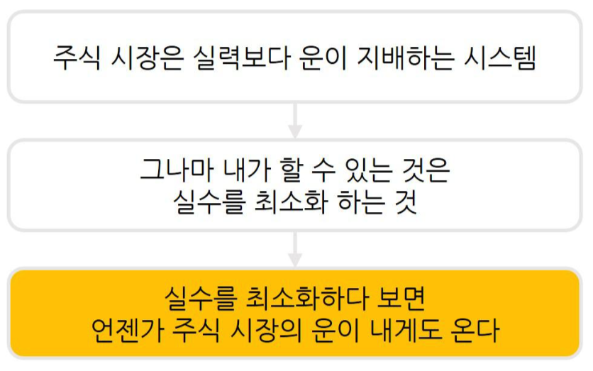 2) 따라서 투자자가 할 수 있는 것은 실수(리스크)를 최소화하면서 운이 터지기를 기다려야 한다.